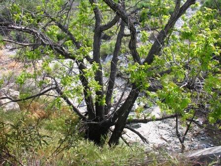 The scientific name for a California Black Walnut Tree is Juglans californica. California Black Walnut trees are native, deciduous trees that grow from 20 to 49 feet tall. Trees tend to have multiple trunks which grow outward from a ring at the base, giving younger trees the appearance of v-shaped shrubs. The leaves are 1.5 to 3 inches long and the trunk is blackish brown and very furrowed or “grooved” (unlike other hybrid or cultivated walnut trees, many of which have smoother trunks).